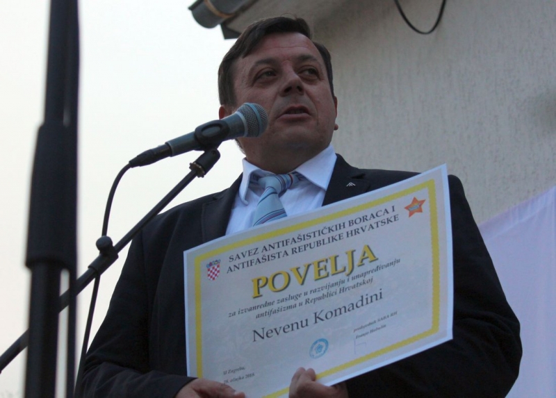 Dobitnik ovogodišnje Povelje za izvanredne zasluge u razvijanju i unapređivanju antifašizma u Republici Hrvatskoj je načelnik Općine Dobrinj Neven Komadina, a u ime Saveza antifašističkih boraca i antifašista RH uručili su mu Dinko Tamarut i Darko Fanuko.