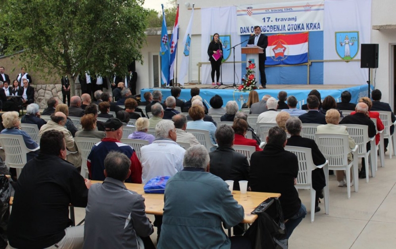 U svojem je pozdravnom govoru Darko Fanuko, predsjednik Udruge antifašističkih boraca i antifašista otoka Krka, podsjetio na slavne dane tog dijela povijesti otoka Krka, ali i na sadašnjost. – Okupacija otoka Krka za vrijeme 2. Svjetskog rata trajala je točno 2 godine i 2 dana, od 15. travnja 1941. kada ga je preplavilo 5.000 do zubiju naoružanih Musolinijevih vojnika, pa do 17. travnja 1945. kada su ga oslobodile jedinice Narodnooslobodilačke vojske – započeo je svoje izlaganje Fanuko. U svojem je govoru podsjetio na podatak da je u tom ratu živote izgubilo 539 otočana što u odnosu na 19.663 koliko je 1944. godine otok Krk imao stanovnika, visoki postotak od 2,74 % poginulih. Što se tiče sadašnjosti, istaknuo je da je licemjerno danas pozivati na pomirbu ustaša i partizana, budući da je od tada prošlo 73 godine i da su se dobronamjerni ljudi odavno pomirili. Sadašnji pozivi na pomirbu su za njega samo parole koje kod neupućenih služe samo za unošenje zabune i obnavljanje već davno prevladanih mržnji i sukoba.