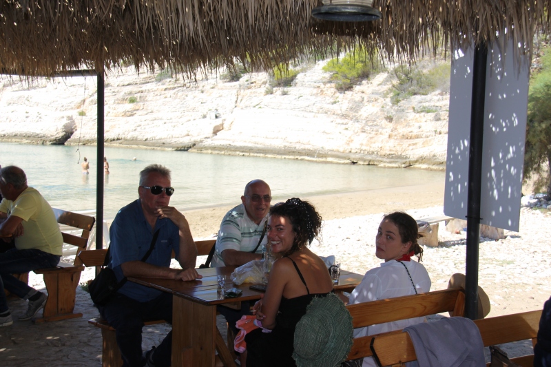 Nakon noćnog odmora i ranog doručka treći dan smo imali organiziran izlet brodom do otoka Biševa. Ukrcajem na obiteljske brodice Ames i Galijula sigurno će svima nama ostati doživotno u lijepoj uspomeni, jer zahvaljujući posebno raspoloženim domaćinima mi smo svi uživali u u razgledu Modre špilje, u blizini špilje stanište Jadranske medvjedice i plovidbi oko otoka Biševo gdje smo bili svjedoci nastanka prekrasnih kamenitih stijena i uvala nastalih djelovanjem morskih valova. Nastavljamo plovidbu uz pjesmu i priču kapetana Pjera prema uvali gdje je sniman film „Mama Mia“. Uz domaću višku šalšu sa tjesteninom i uz lijepo sunčano vrijeme cijeli je ugođaj bio kompletan i svi su bili posebno raspoloženi. Nakon vožnje brodom autobusom krećemo prema Visu u rezgled Titove špilje u kojoj su Josip Broz i partizansko vodstvo tajno boravili nekoliko mjeseci tijekom Drugoga svjetskog rata (1944.).