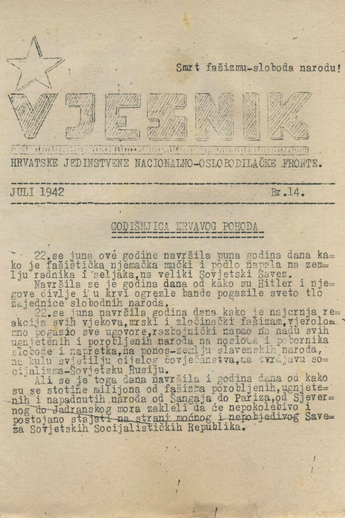 Brošura: SABOR/U/TOPUSKOM/TREĆE ZASJEDANJE ZEMALJSKOG/ANTIFAŠISTIČKOG VIJEĆA NARODNOG/OSLOBOĐENJA HRVATSKE/8.-9. SVIBNJA 1944./1944/IZDANJE „VJESNIKA“ JEDINSTVENE NARODNO-OSLOBODILAČEKE/FRONTE HRVATSKE