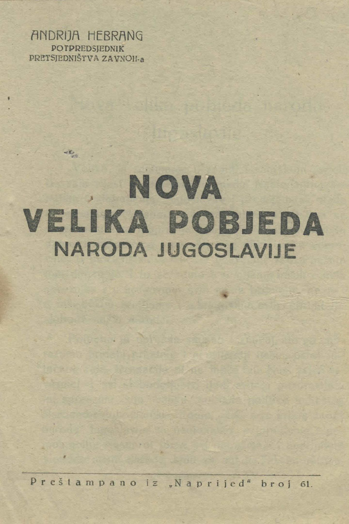 Brošura: ANDRIJA HEBRANG PODPREDSJEDNIK PREDSJEDNIŠTVA ZAVNOH-A: